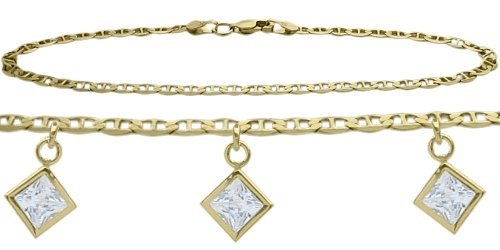 -. Title : 14K Yellow Gold Mariner Anklet with Genuine 1.95 Carat White Topaz Square Charms
