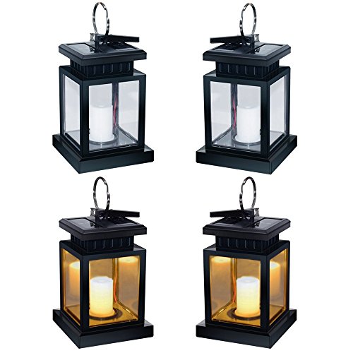 ANDEFINE Hanging Solar Lanterns Outdoor LED Umbrella Lights Waterproof Candle Lamps Hang on Patio Umbrella Shepherd's Hooks Tree (Yellow Light, Pack of 4)