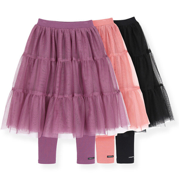 종아리 아래까지 내려오는 긴 기장감의 샤 치렝스에요. 3겹으로 하여 제일 겉감으로 3단 캉캉으로 구성하여 공주님 A라인 핏을 최대한 살려봤어요. 안쪽 레깅스는 기모감 있는 도톰한 30수 후라이스 스판 소재로하여 착용감도 매우 좋답니다.