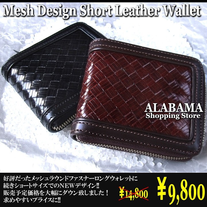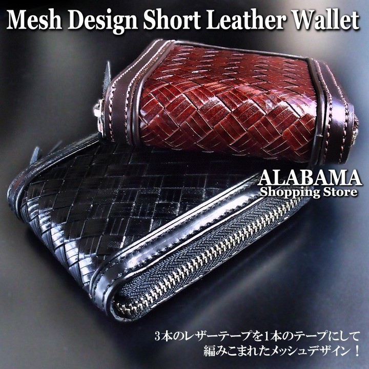【Deep Zone】ワイルドでセクシーを上品にまとめる男のレザーブランド。自分買いからプレゼントにも人気でオススメです。財布/二つ折り/本革/NEWデザインメッシュラウンドシュートサイズウォレット数量限定で34%オフでのセール販売!3本のレザーテープを一枚のレザーテープにして編み込まれたメッシュデザインウォレット!サイズも後ろポケットに収まるショートサイズ手作り感溢れる雰囲気を持つ仕上がり!クラフトマンの渾身の技ありロングウォレットであり量産できない、ハンドメイドレザーウォレットです。 [素材]牛革 [カラー] ブラウン・ブラック