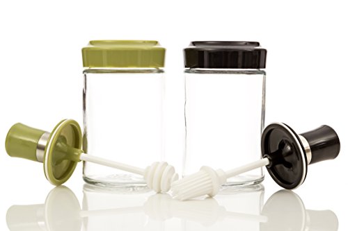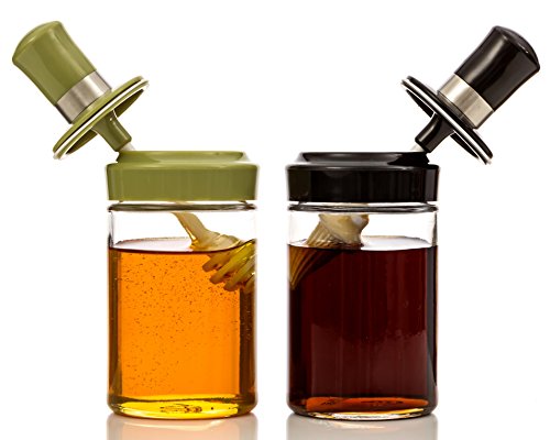 Honey/Syrup Jar (250ml) w/ Combination Dipper/Spoon & Lid Glass – Wide Mouth for Mess-free & Easy Dispensing, 8oz Capacity (Set of 2)