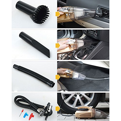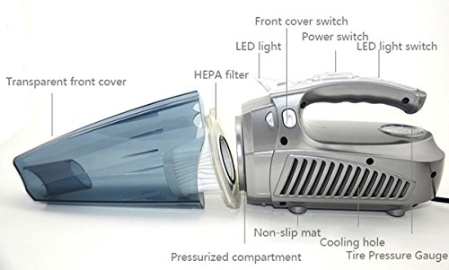 -. Title : Smir Portable Handheld Vacuum 12V DC 60W Wet/Dry Auto Vacuum Cleaner for Car, Garage or In-Home Use, With Multi-functions of Tire Inflator Pump 150 PSI Air Compressor ,Tire Pressure Gauge and LEDs light