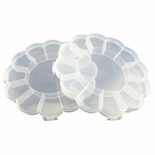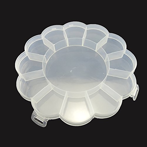 -. Feature : Material: plastic; Size:15.7*15.7*2cm(approx.) / Cute shape, with 12 small compartments and 1 big compartments. / Small compartments size: approx 3.2*3*2cm, can be used to store earrings, necklace, bead, finger ring or other small jewelry, even pills. / Big compartments size: 8.8*8.8*2cm. For larger things. / Flower shaped Storage Box is Visual operation, easy to search for items you need.