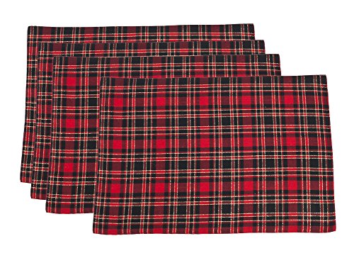 Fennco Styles Highland Holiday Red & Black Plaid Design Tablecloth - 14"x20" Placemat (Set of 4)