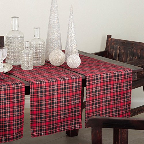 Fennco Styles Highland Holiday Red & Black Plaid Design Table Runner, 16"x54" Rectangular