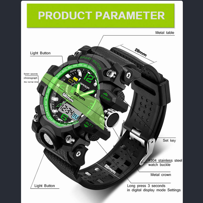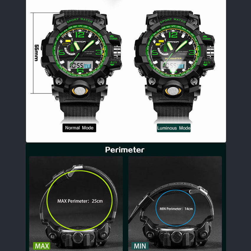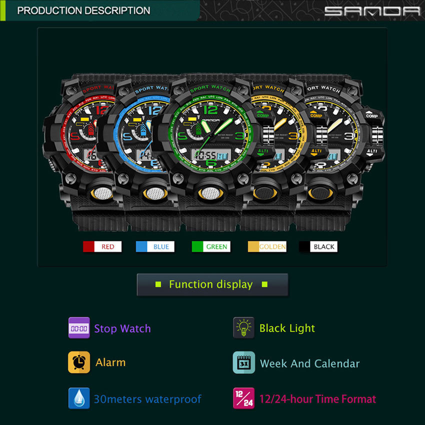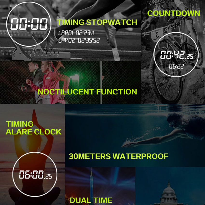 Function:Stopwatch, Date/Week Display, Alarm, 12/24-hour Time Format, Noctilucent, Water Resistant