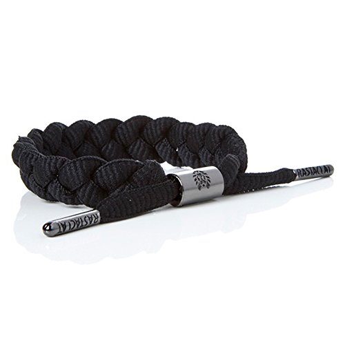 Studio : Rastaclat Publisher : Rastaclat Binding : Apparel Product Description OFFICIAL RASTACLAT BRACELETS, Not a cheap reproduction.All our Merchandise is printed and sold by companies located in USA. This is?the same?merchandise that?Rastaclat sell at their websites.Quality bracelet, made to satisfy your rocking needs when you go out of town and rock out.About The Product:?- Braided nylon?bracelet with metal tips and closure-?Black?with?black metal?and?lion logo and inprinted?- One Size Fits Most 0