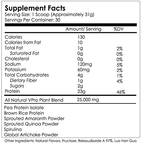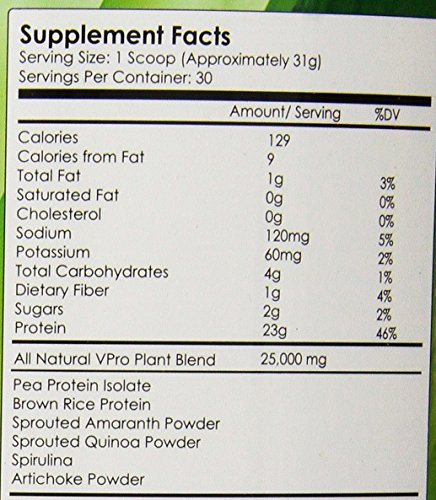 NutraKey V-Pro, Raw Plant Based Protein Powder with 23g of Protein, Vanilla, 2-Pound