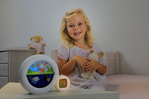The kid'sleep moon has many benefits, as a night light and sleep teacher for young children and an alarm clock for older children. It helps young children have an understanding of when it is time to get out of bed and when it is not. It is a great tool for nighttime self regulation and the result is that both parents and children get more sleep. The kid'sleep moon helps kids stay in bed until it is time to get up. If the sleeping animal is lit, kids know to stay in bed. When the awake animal is illuminated, it is okay to get out of bed and start the day. Kids naturally relate to the sleeping or awake animal. Color recognition is not required. The kid'sleep moon has 3 settings for nighttime, nap and weekend, 4 choices of alarm sounds (or the choice of no alarm) and 4 levels of brightness to choose from. The kid'sleep moon helps children fall asleep with 4 different choices of lullabies. The kid'sleep moon also offers the smart sunset "go to sleep" function and the smart moonset "wake up process", which gives kids a 10 minute warning for sleep time and get up time. The kid'sleep moon has a new menu for very easy setting.Feature