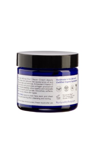 Nurture My Body Organic Vita C Cream Our Organic Vita C Cream is a rich emollient cream that contains Vitamin C which has been proven to prevent and reverse the signs of aging on dry and mature skin. This special cream helps to increase your skin's elasticity and allows your skin to feel smoother instantly. Give your skin the nourishment it needs to stay healthy and retain its youthful glow with our Organic Vita C Cream.