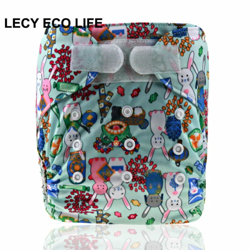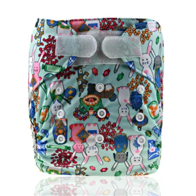 item:PUL printed one size pocket diaper with hook and look closure