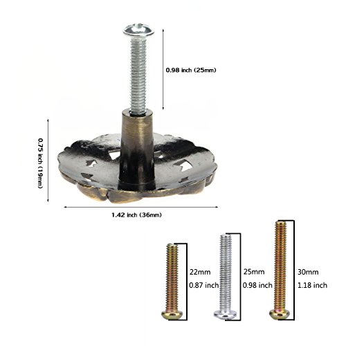 Studio : Corasays Publisher : Corasays Binding : Kitchen Product Description Specifications: - Material: zinc alloy - Dimension: 1.42 x 0.75 inch (36 x 19mm) - Color: Antique Brass/Red Bronzen - Ceramic knob weight includes the package: 350g Package Included: 10 pieces round shape zinc alloy knobs 10 pieces 22mm Screws 10 pieces 25mm Screws 10 pieces 30mm Screws Note: - There might be 0 to 1 cm measurement error. - Due to the difference between different monitors, the picture may not reflect the actual color of the item.