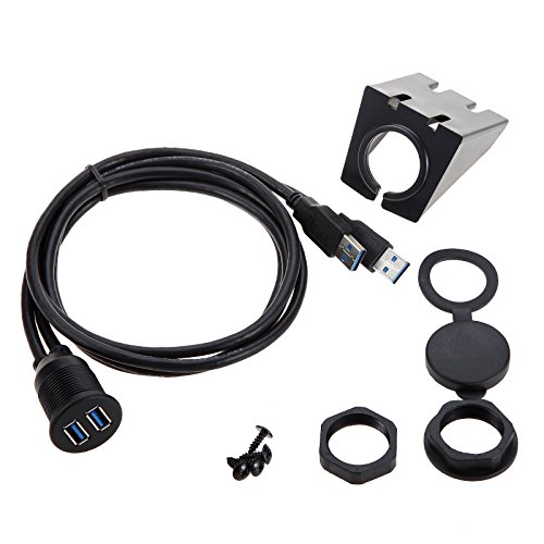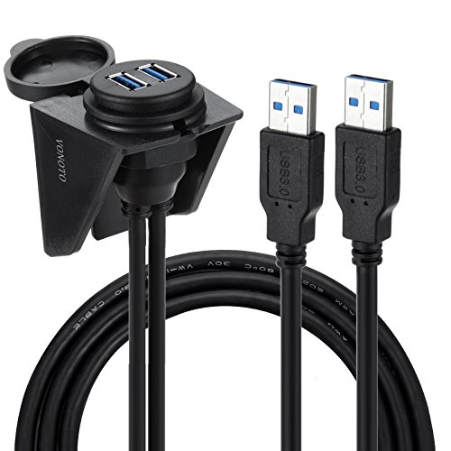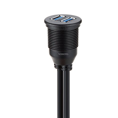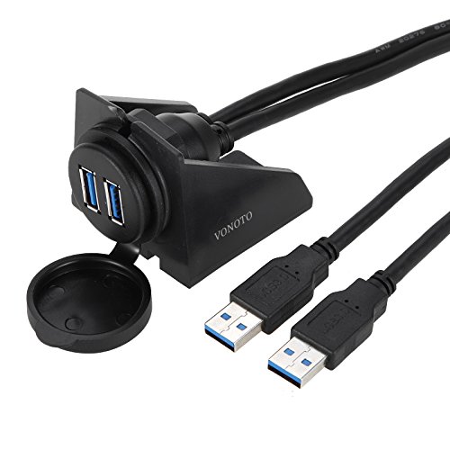 USB 3.0 Flush Mount Cable, VONOTO 2M 6FT Dual USB 3.0 to USB 3.0 Panel Flush Mount Cable with Dash Mounting Bracket for for Car Motorcycle Boat Bike Trailer dash or other surface