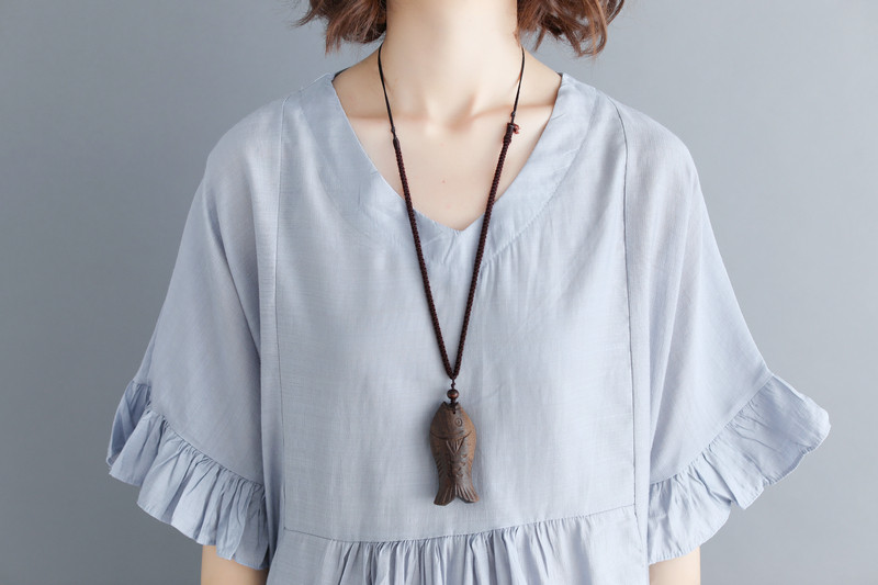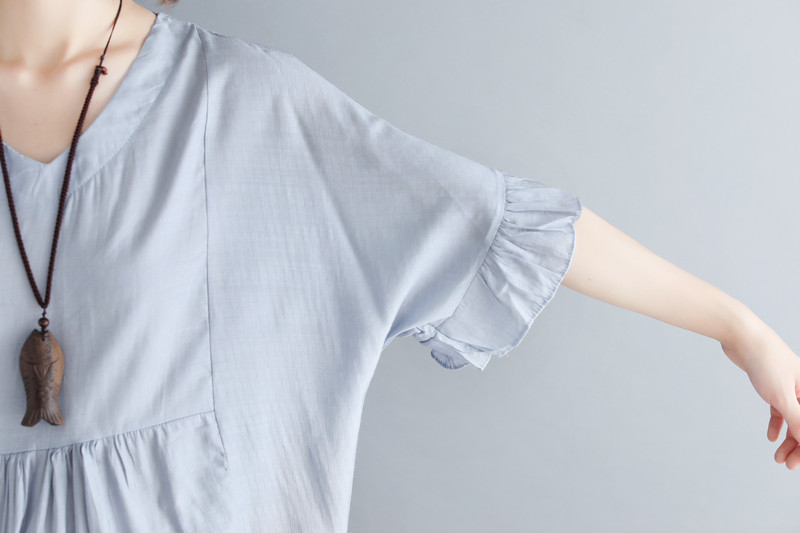 colour:gray/green 素材:棉麻 size:free (length 69cm Bust 128cm)