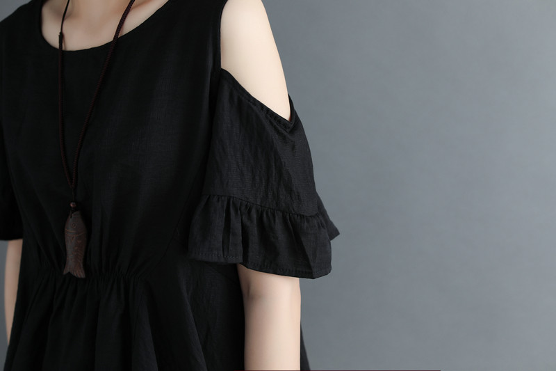 colour:white/black 素材:棉麻 size:free (length 65cm Bust 114cm)