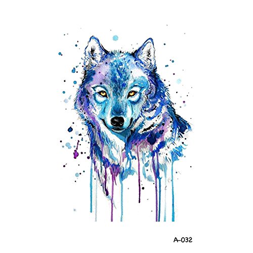 WYUEN 5 PCS Watercolor Wolf Temporary Tattoo Sticker for Women Fake Tattoo Men Body Art Hand Waterproof Tattoo 9.8X6cm FA-032