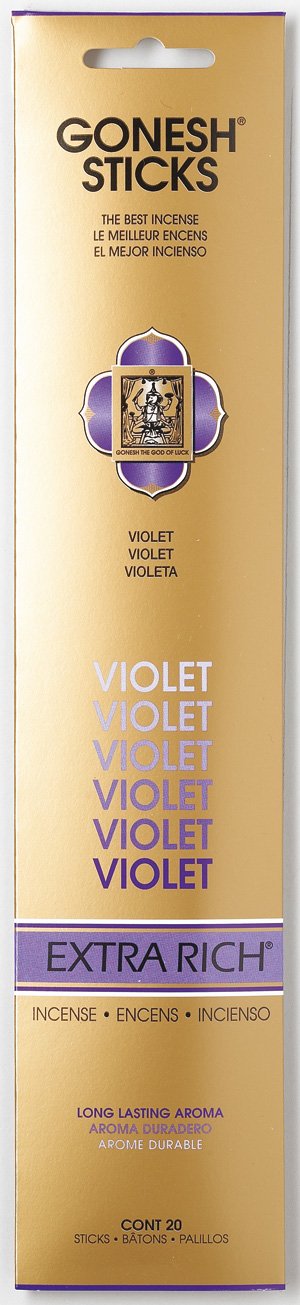 "GONESH INSENCE Extra Rich Stick Violet" is an incense (stick) that imaged a violet blooming violet.