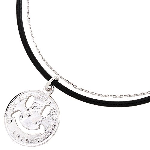 -. Title : レザーコード×チェーン ニコちゃん エリザベスコイン 2連ブレスレット 【お肌に優しいニッケルフリー】 シルバー (v4293-R)