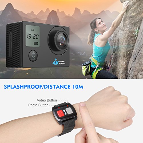 WIFI Wireless Wrist Remote Control: Wi-Fi connectivity lets you connect with smart devices without any wires. This Wi-Fi is not only a remote control, it allows you monitor in real-time, review videos/photos on your Smartphone, set camera feature and record modes. What is more, with remote control, you can wear it on your waist and trigger the camera to take a shot or start recording or even Power On/Off, very useful.