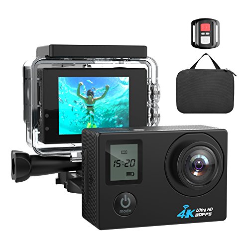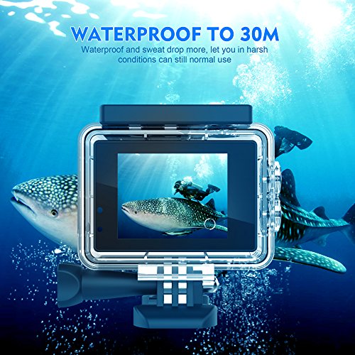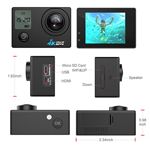100 Feet (30m) Waterproof Camera: The waterproof housing is designed to withstand extreme environments and conditions. Dual screens, 2 inch high definition back screen display wifi connection, video quality directly to you ealier to operate, front 0.66 inch monochrome screen shows camera mode, some camera info and battery power.