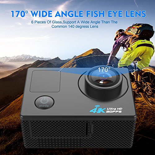4K WIFI Action Camera Ultra HD Waterproof Sport Camera 16MP 173 Degree Wide Angle, Free Travel Bag