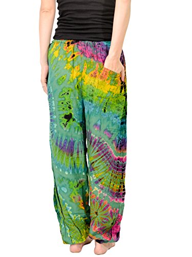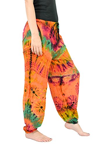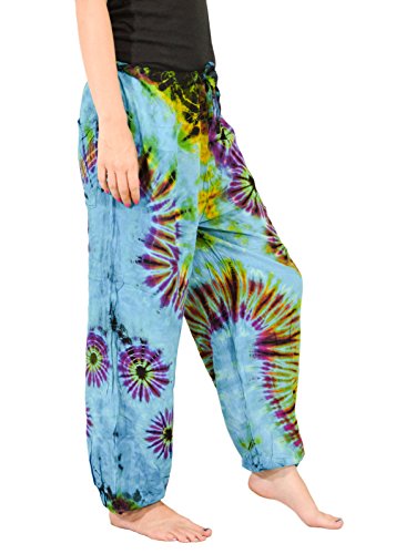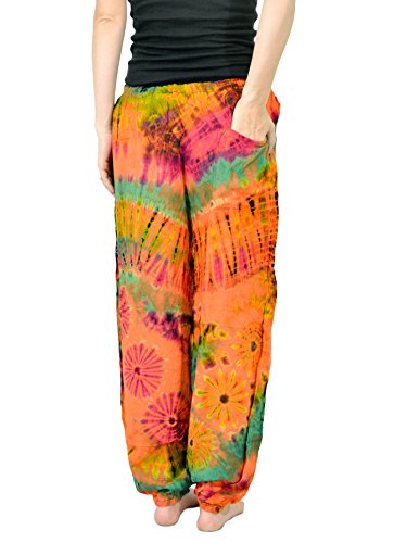 -. Brand : Orient Trail -. Department : womens -. Feature : Tie-dye pants with comfy drawstring elastic waist | Single small back pocket | Loose elastic ankles / Fits up to 34" Waist and 42" Hips, Womens sizes US 0-14 / Hand "Cold" dyed to help prevent bleeding and fading / Model Info: Height: 5'6'' | Bust: 33 | Waist: 28 | Hip: 38 | Wear Size: medium / Machine wash separate - Hang to dry | Lightweight | Quick to dry | Imported | American cut and quality -. ProductGroup : Apparel -. ProductTypeName : APPAREL -. Title : Orient Trail Women's Yoga Pajama Tie-dye Hippie Pants Size US 4-14