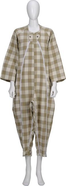 着替えや介護が最も楽に行えるタイプ。胸元から両足首にかけてファスナーが「ハ」の字型についています。おむつ交換に便利な股ファスナー付き。