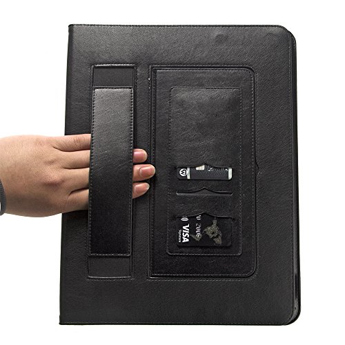 Interior card slots are designed for you to put your business cards/ bank cards/ SD digital card/ SM card. Note holder provides to take some notes or bucks while on the go. Hand strap makes it possible for you to hold the tablet with one hand. Elastic strap secures your precious tablet even better.