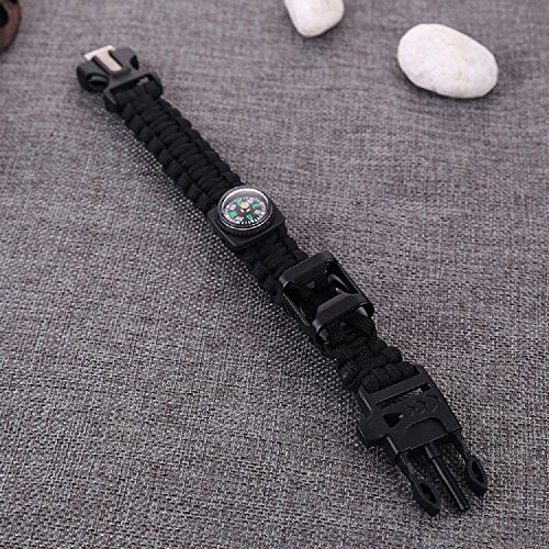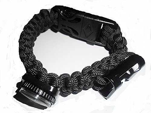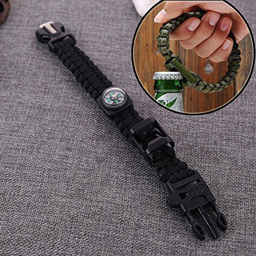 #1 Amazing Survival Bracelet 6 in 1 with Paracord, Bottle Opener, Compass, Whistle, Flint Fire Starter and Scraper (Black)