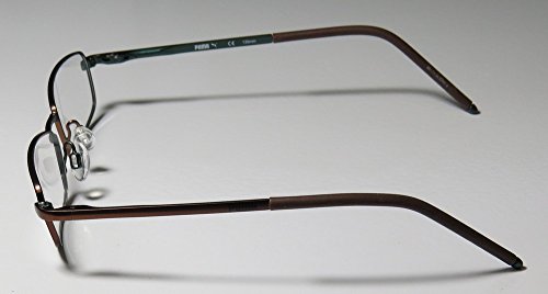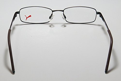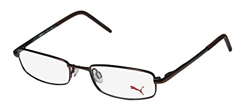 Brand: Puma Style: 15382 Gender: unisex Frame Type: full-rim Frame Material: metal Case: eleganzo The frame is fully rx-able and can be fitted with prescription and/or tinted lenses at most optical stores. Please note that factory demo lenses have a logo stamped on them in ink. These eyeglasses are made of corrosion resistant and strong metal. The frame has spring hinges. Spring hinge temples prevent you from stretching the fit of your glasses and ensure that they remain intact and not become loose or out of shape. Please keep in mind that original case is not included with this frame. However, we will include an Eleganzo hard case at no extra charge to keep your eyeglasses protected. These eyeglasses retail for $140.00 at upscale stores that carry designer frames. Save your money and get them here! The pictures cannot fully reflect the beauty of this piece of designer eyewear. These eyeglasses look even more elegant in real life. This is one of the most popular Puma styles on the market right now. 0 |