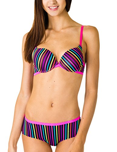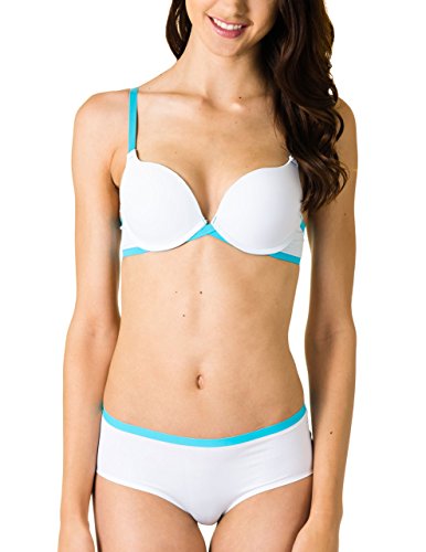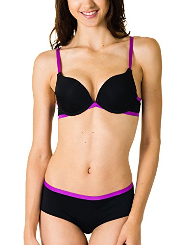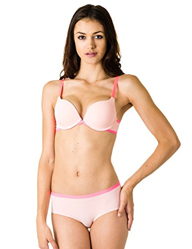 Here we have a sexy extreme push up bra with a hipster panty. They have smooth lines with laser cut seams. It is smoothing with a silky soft touch. Model wears a 34B/Large;Model Measurements: Bust: 33'', Under Bust: 29'', Waist :26'', High Hip: 32", Hip: 36.5'', Height: 5'11'' Specs(measurements are taken across hip; for best fit please be sure yours fall within) Small:24-32" Medium:26-34" Large:28-36" X-Large:30-38"Feature