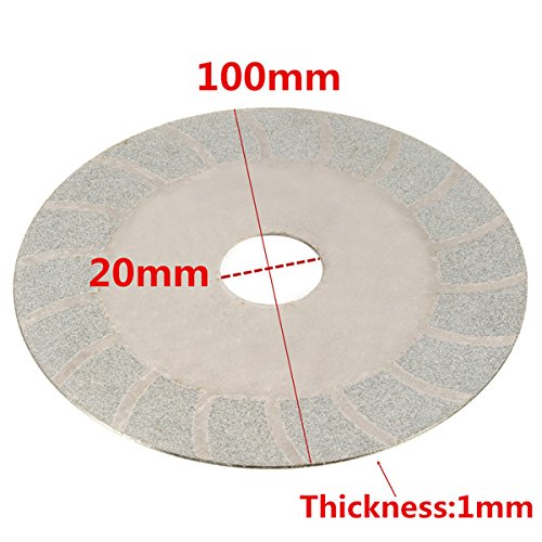 Studio : BephaMart Publisher : BephaMart Binding : Electronics Product Description Description: 4 Inch 100mm Diamond Saw Blade Disc Glass Ceramic Granite Cutting Wheel For Angle Grinder Specifications: Material: Diamond Diameter: 100 mm Hole Diameter: 20 mm Thickness: 1 mm Color: Silver Quantity: 1pc Feature: Sharp, wear-resistant, not easy to fall off. Use for: cutting glass , glass tiles , stone , brick, porcelain, slate, limestone , ceramics, granite ect. Let Emery direct contact with the cutting object to achieve sharp effects. Please add water for coolant when using diamond tools. Package Included: 1x Diamond Saw Blade Note: 1.Manual measuring, please allow 1 ~ 3 mm error, thanks. 2.The color may have different as the difference display,pls understand. More Details: