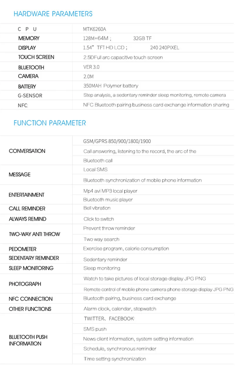 Feature:Alarm,Bluetooth,Answer Call,Call Reminder,Complete Calendar,Message Reminder
