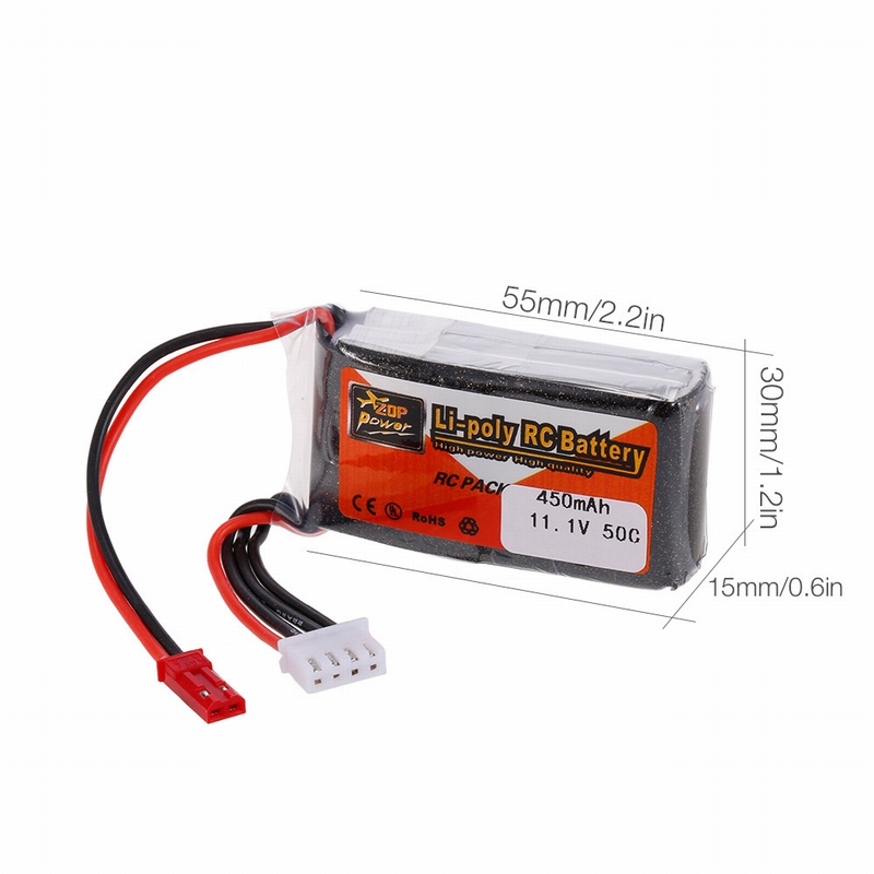 ZOP Power 3S 11.1V 450mAh 50C li-po battery with JST plug for RC fans. This battery is suitable for 110, 130 wheelbase RC FPV racing drone and other RC car and boat with JST plug. Perfect choice for you to enjoy more RC fun.