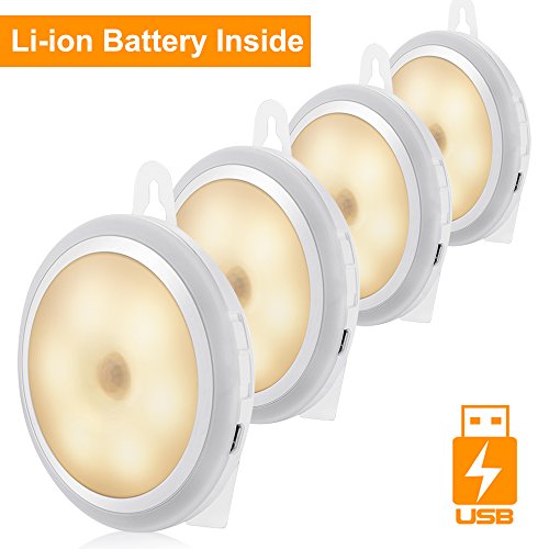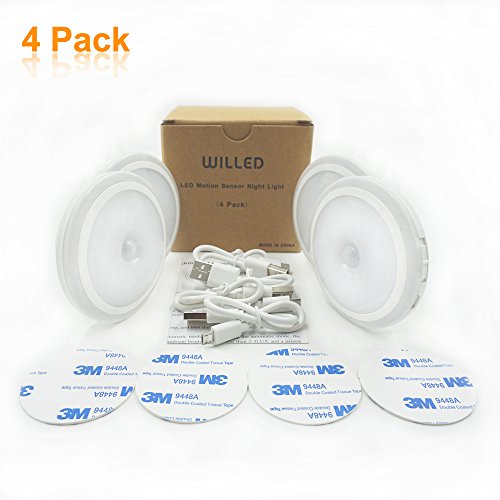 Motion Sensor Night Light, WILLED USB Cordless Rechargeable Motion Activated LED Light,Stick-anywhere Closet Lights,Stair Lights,Wall lights for Hallway, Bathroom,4 Pack(Warm White)
