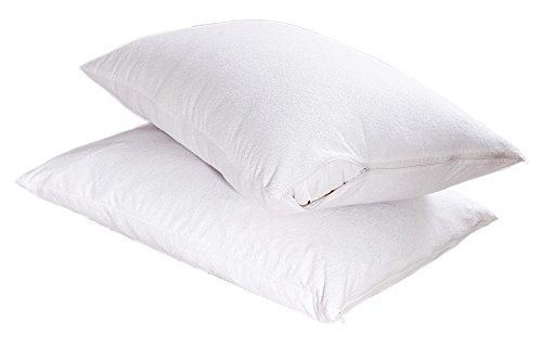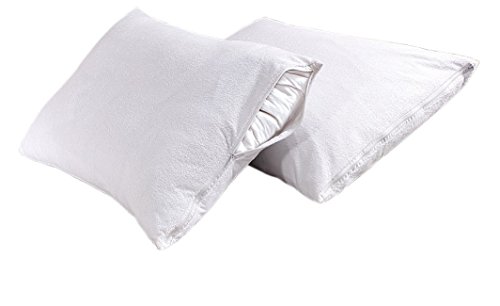 Standard Cotton Terry Waterproof Pillow Protectors Set of 2 / Pair Absorbent Premium Zipper Bed Bug Encasement Hypoallergenic Allergy Covers Bacterial Dust Mite Breathable Cases By NSS