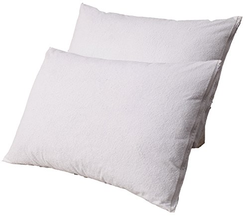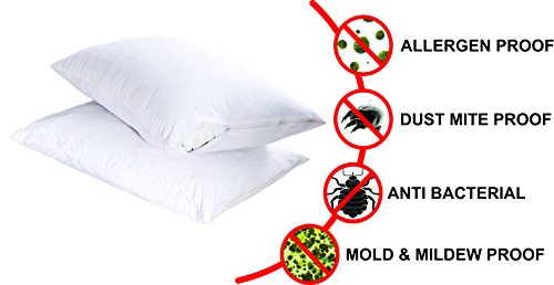 100% WATERPROOF ZIPPERED PROTECTION - Our cotton pillow protectors have microscopic pores in the 100% Waterproof Polyurethane membrane provides protection safe. Cotton pillow protectors prevents moisture .Carefully stitched with anti bed bug stitch style that does not allow entry or escape of bed bugs , pillow case protector also include two zip guards at each of the zipper end.Our bed pillow protectors are in white color.These are non allergenic pillow protectors covers.
