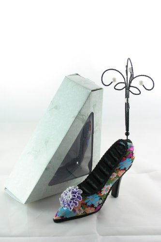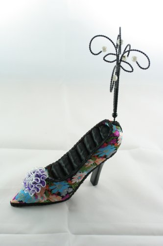-. Title : Beautiful Flower Satin High Heel Shoe Ring Hold Jewelry Stand