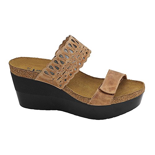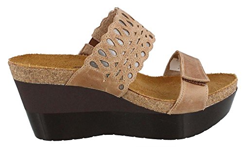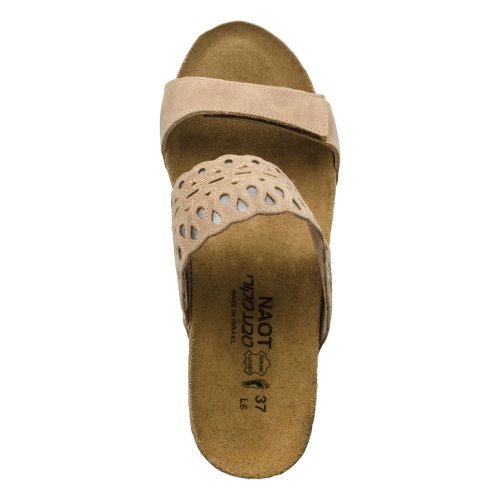 Studio : Naot Publisher : Naot Binding : Apparel Product Description Casual and with a personality of its own the new Naot Rise will bring new life to all of your summer outfits. This wedge sandal boasts of an incredible construction and craftsmanship, made with genuine leather upper, they boasts of a suede wrapped cork and latex footbed. Both lightweight and durable, they boast of excellent shock-absorption and arch support. Boasting of a 3" heel, it also has an inside gore and a perforated design with contrasting underlay for added glamour. Sitting on top of a polyurethane rubber outsole for outstanding traction and stability, look absolutely stunning this upcoming season when sporting the new Naot Rise! 0