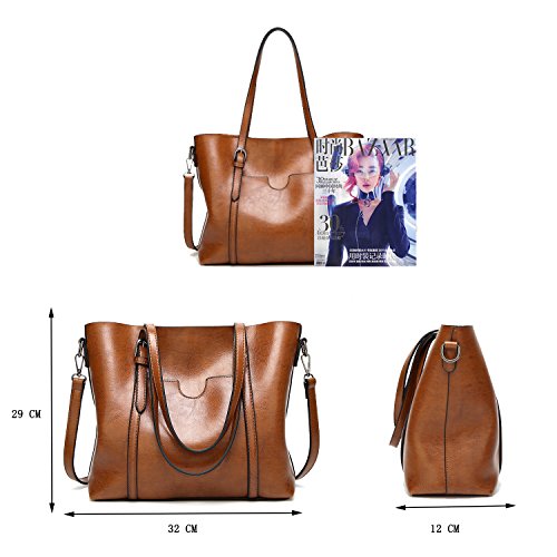 -. Feature : Material: soft synthetic leather with fabric lining.(Processed with oil wax, so it looks more bright. Along with many delicate and clear texture.) / Approximate Dimension: 12.6" L x 5.1" D x 11.4" H ;Handle Drop: 9.1" (long enough to put on shoulders). / All the stuff can be well organized inside! 2 big compartments FIT A4, a central zippered pocket for cosmetic and other daily things , 1 side zippered pockets for Short wallets and another 2 pockets for keys/cards.Outer: One pocket on front exterior provide function for holding wallet or cell phone; Double top handles can be adjusted at both sides. / This tote bag goes well with any outfit.Simple fashion look and powerful capacity for everyday or traval use. Excellent bag for using in office, school, travelling or any other daily occasions. Perfect gift choice. / Warranty: All of our bags have 3-Month WARRANTY. Any quality problems with your bag, please contact us, we will solve it.Please allow little color difference due to the monitor and light brightness.