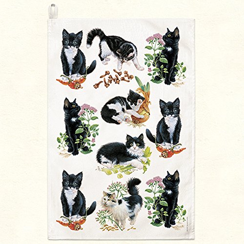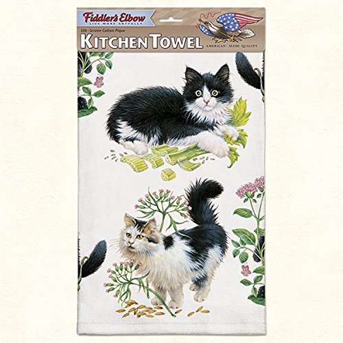Fiddler's Elbow Kitchen Towel--Black & White Kittens--22" by 32"
