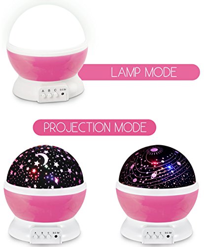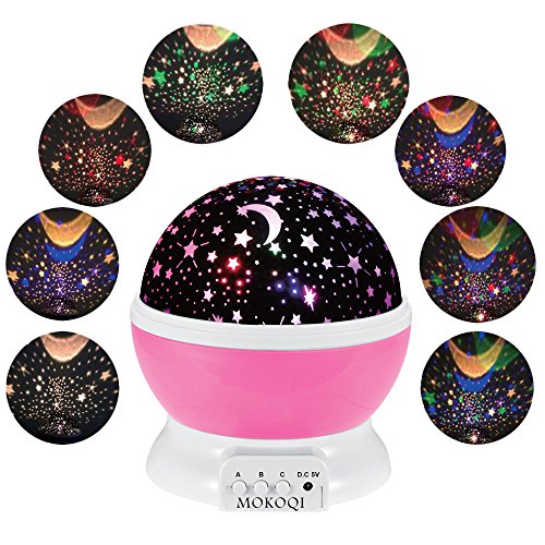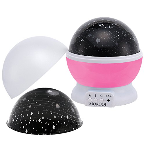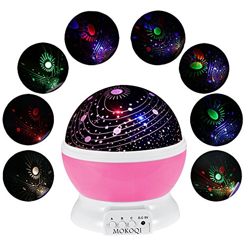 MORE FUNNY WITH: 2 covers of Star Sky Moon Cover & Solar System Cover Projector Light, 1.5 Meter USB Cord, 4 pcs LED Beads of warm light, blue light, green light, red light.They are match with 3 Push-Button (A B C) by MOKOQI.
