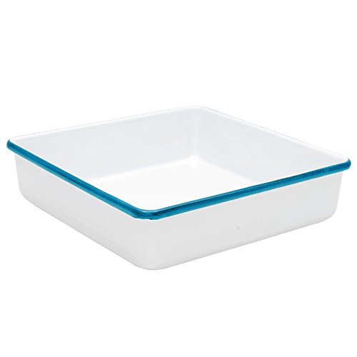 Enamelware Brownie Cornbread Pan - Solid White with Turquoise Rim