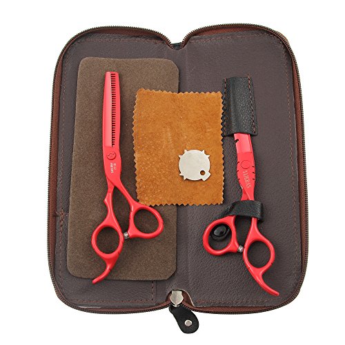TIJERAS Professional Salon Hair Cutting Thinning Scissors Barber Shears Hair Cutting Tools Set 5.5 Inch Red