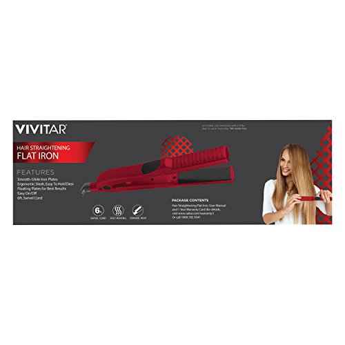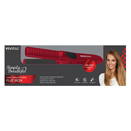 Vivitar PG-7100 Ceramic Straightening Easy to Use 450 Degree All Hair Types Flat Iron, Red