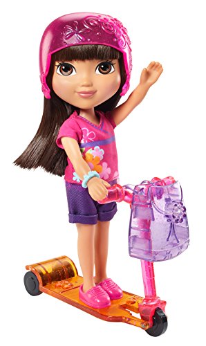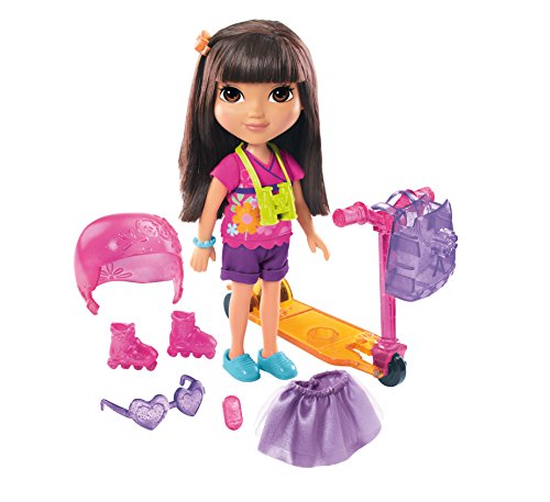 -. Feature : Dora doll with soft hair and pose able arms and legs! / Dora is dressed and ready for adventure! / 8'' Dora doll featuring soft, stylable hair and pose able arms and legs! / Includes a fold & go scooter, skates and a safety helmet so Dora can explore her city, Playa Verde! / Includes 8'' Dora, scooter, skates, sneakers, safety helmet, sunglasses, binoculars, backpack, cellphone, fabric skirt and a hair barrette