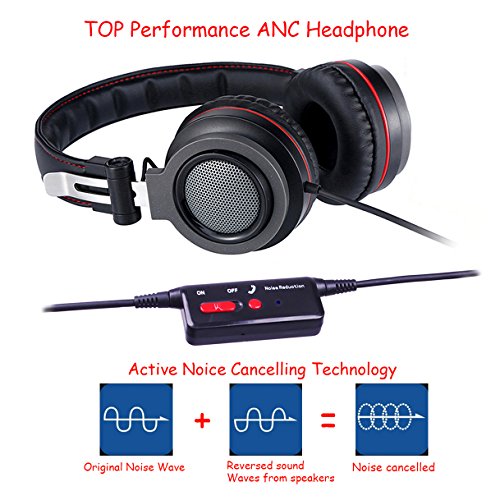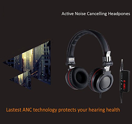 Conambo CQ3 Active Noise Cancelling Headphones On Ear Foldable Headphone with Inline Mic for iPhone/iPad/iPod/Samsung/LG iOS Android Smartphones and Laptop PC with Airplane Adapter, Black
