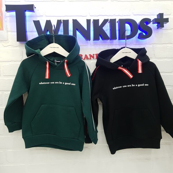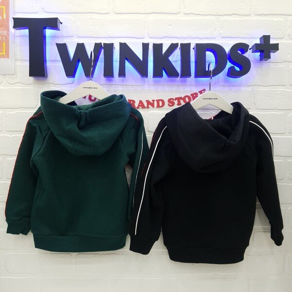 기모 후드티셔츠이며 앞 레터링 테잎으로 포인트를 주었다
