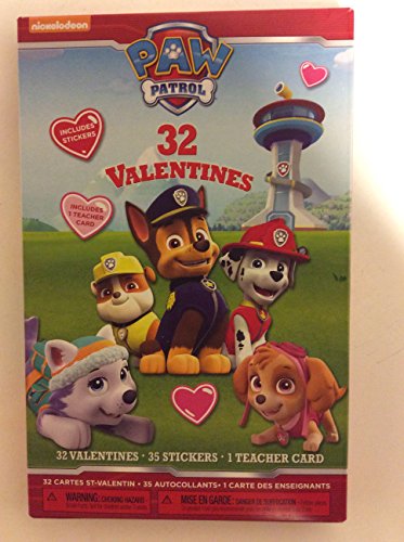 Paw Patrol 32 Valentines with Stickers and Teacher Card