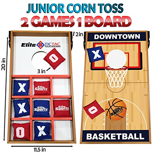 Elite Sportz Junior Bean Bag Toss Game - 2 Games On 1 Board, You Can Play Kids Cornhole Toss or Just Flip-It Over and Play Tic Tac Toe. 2 Active Indoor - Outdoor Games to Keep Kids Busy for Hours